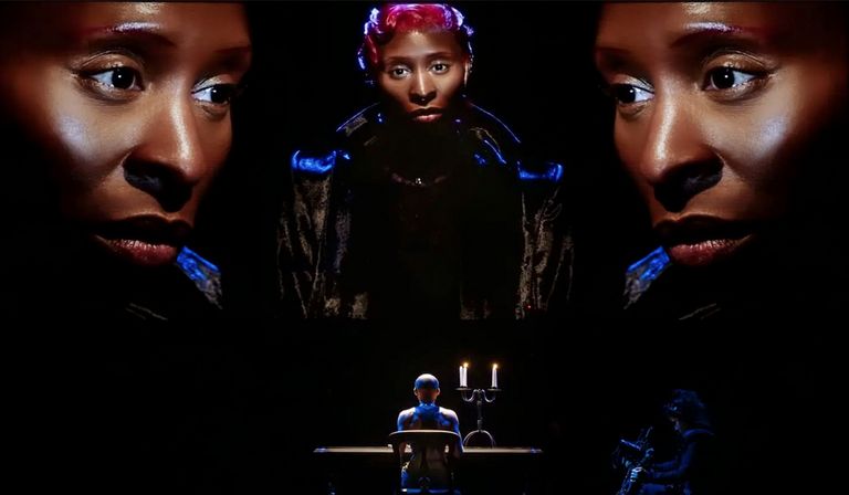 Sarah Snook won a Tony for her work in The Picture of Dorian Gray. In Cynthia Erivo there is no doubt that Williams has another bona fide dramatic performer, long loved by stage critics before Hollywood found her. But her job here is reduced to audiobook narrator, reciting chunks of text while our eyes stay fixed on the huge screen that dominates the stage. Most of the time, Erivo’s birdlike body is barely lit, hidden behind furniture, or turned away from us in the darkness.